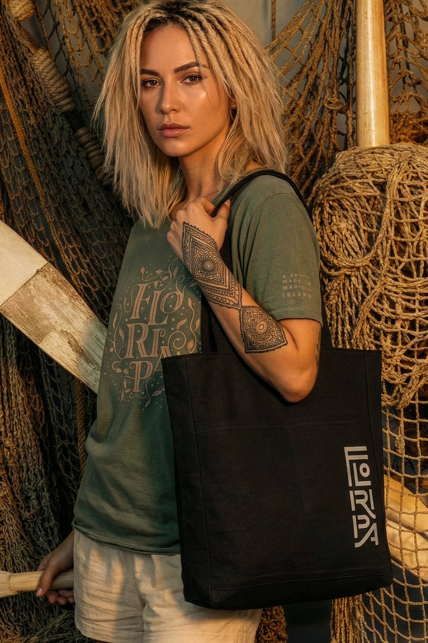 Fibra natural, 100% algodão cru 560g Forro: Tricoline 100% algodão Formato: 34cm (largura) x 35cm (altura) x 10cm (profundidade) Alça preta 100% algodão