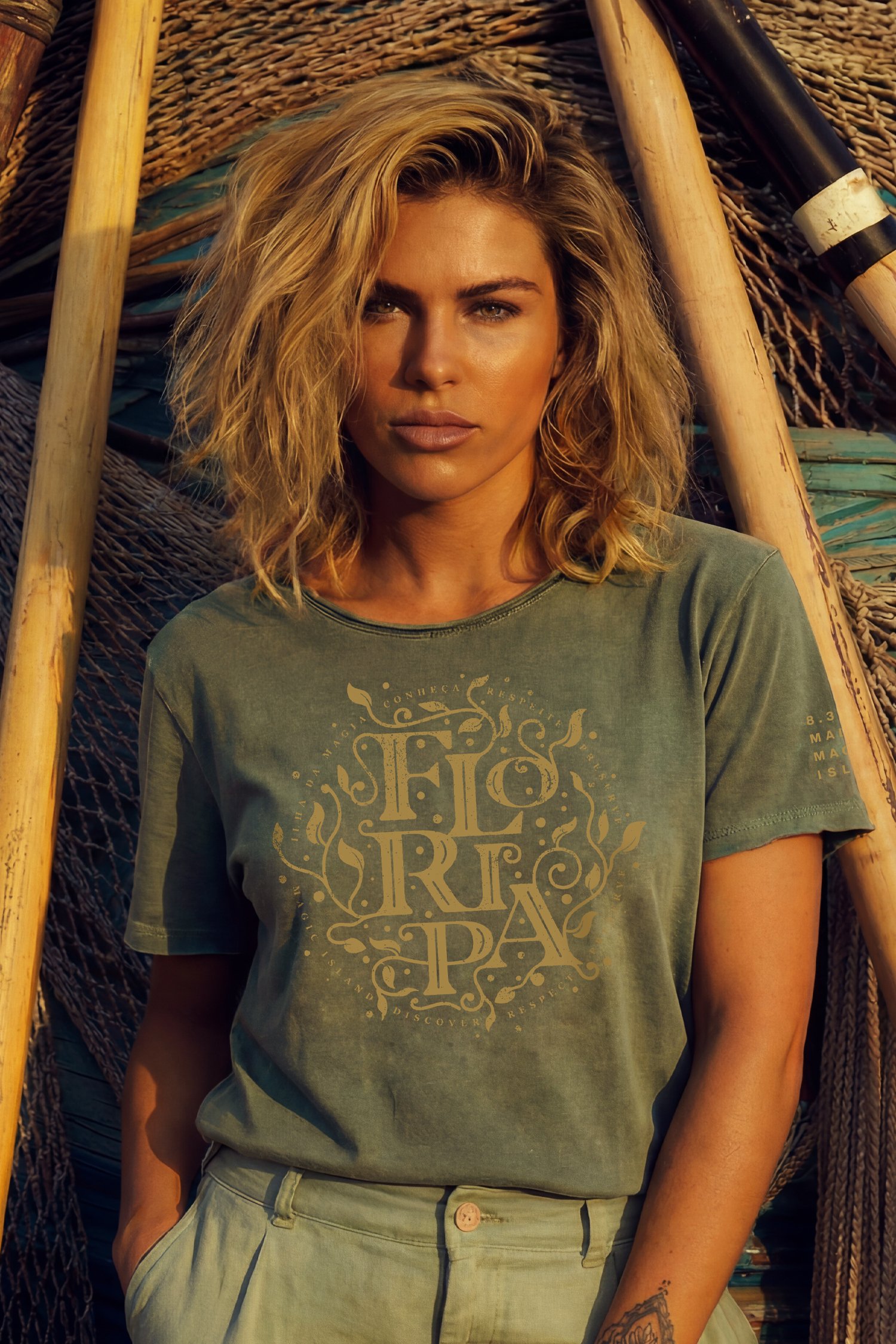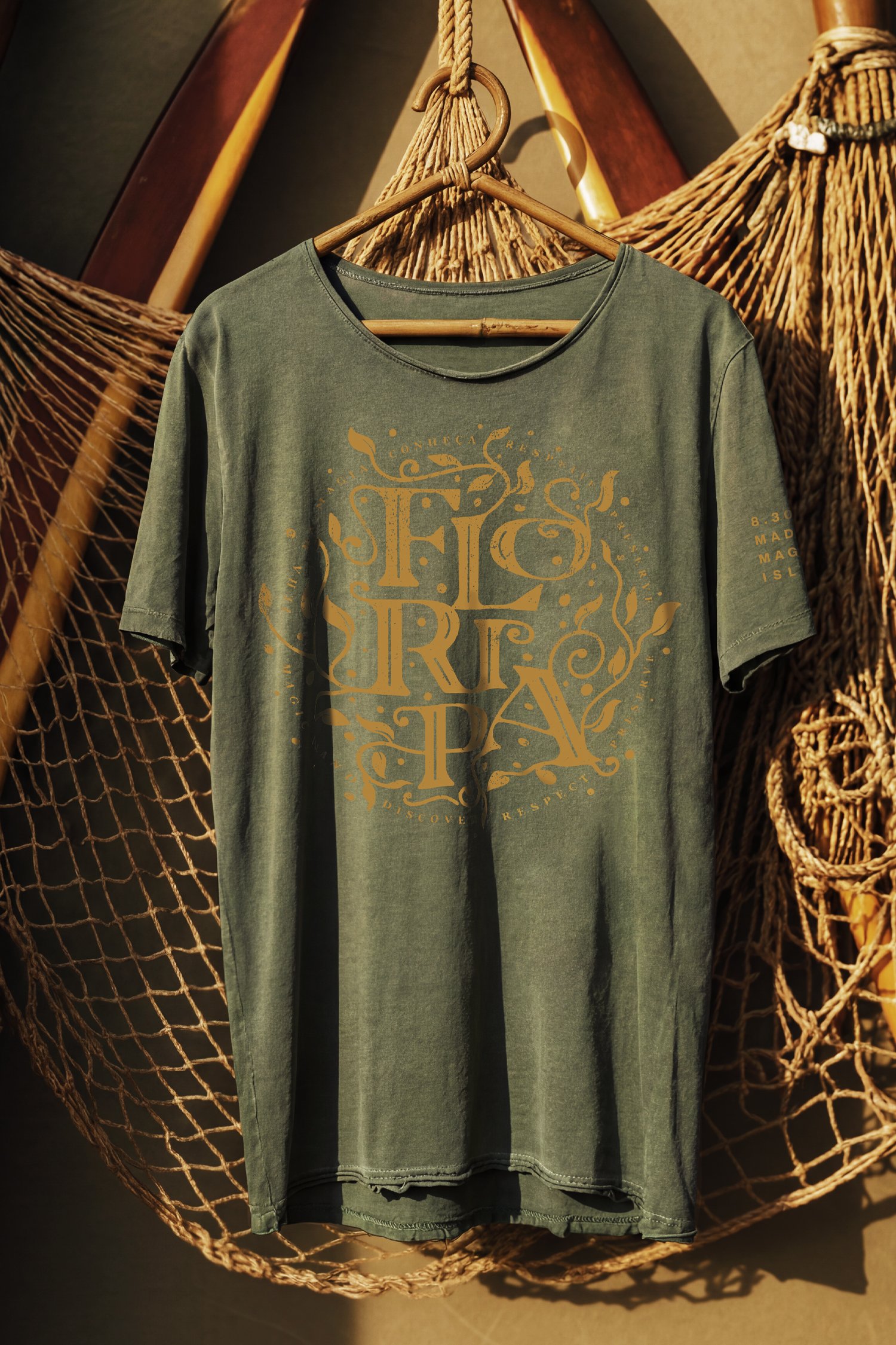 Tshirt Unissex 100% algodão. Feita à mão na Ilha da Magia. Meia malha 175g, fio 30/1 penteado, pré-encolhido, lavado e amaciado.