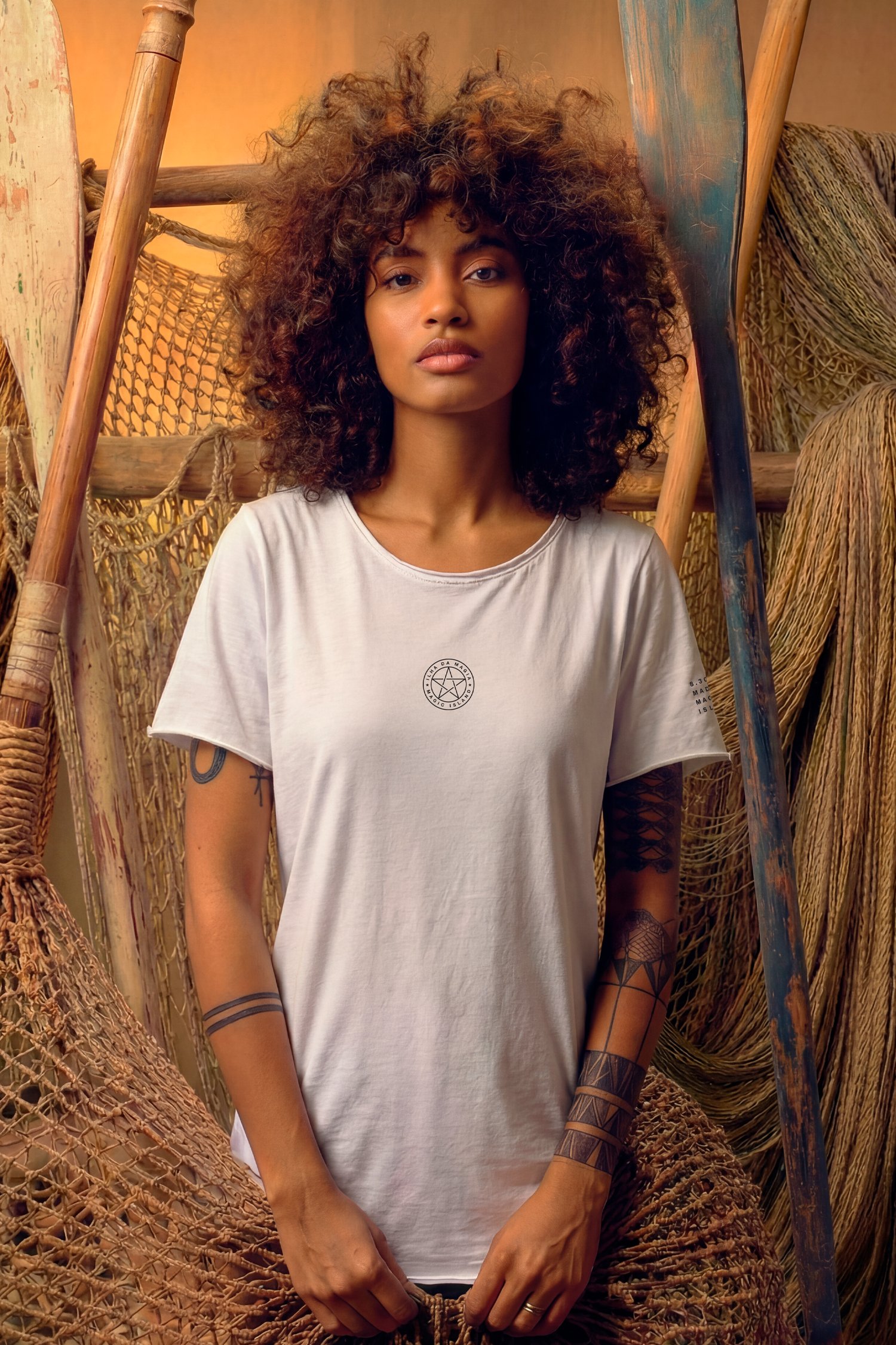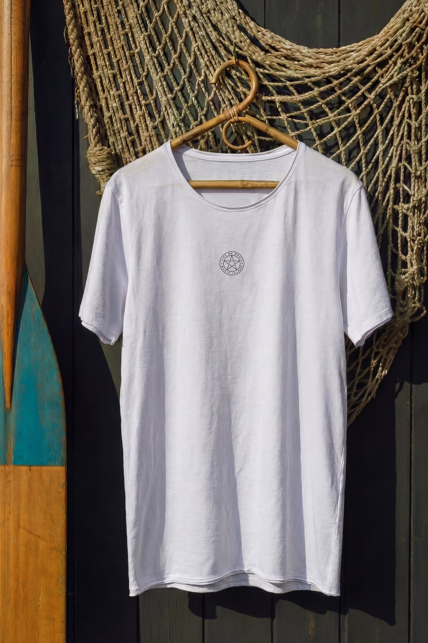 Tshirt Unissex 100% algodão. Feita à mão na Ilha da Magia. Meia malha 175g, fio 30/1 penteado, pré-encolhido, lavado e amaciado.